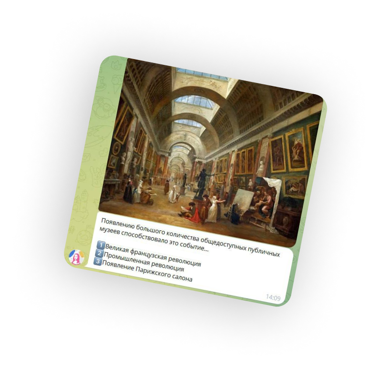 Наш дружелюбный бот-помощник всегда рядом, чтобы напомнить вам о вашем творческом путешествии, предложить интерактивные задания и дополнительные материалы. Он поможет вам сохранить момент и даст вам вдохновение для новых творческих идей.